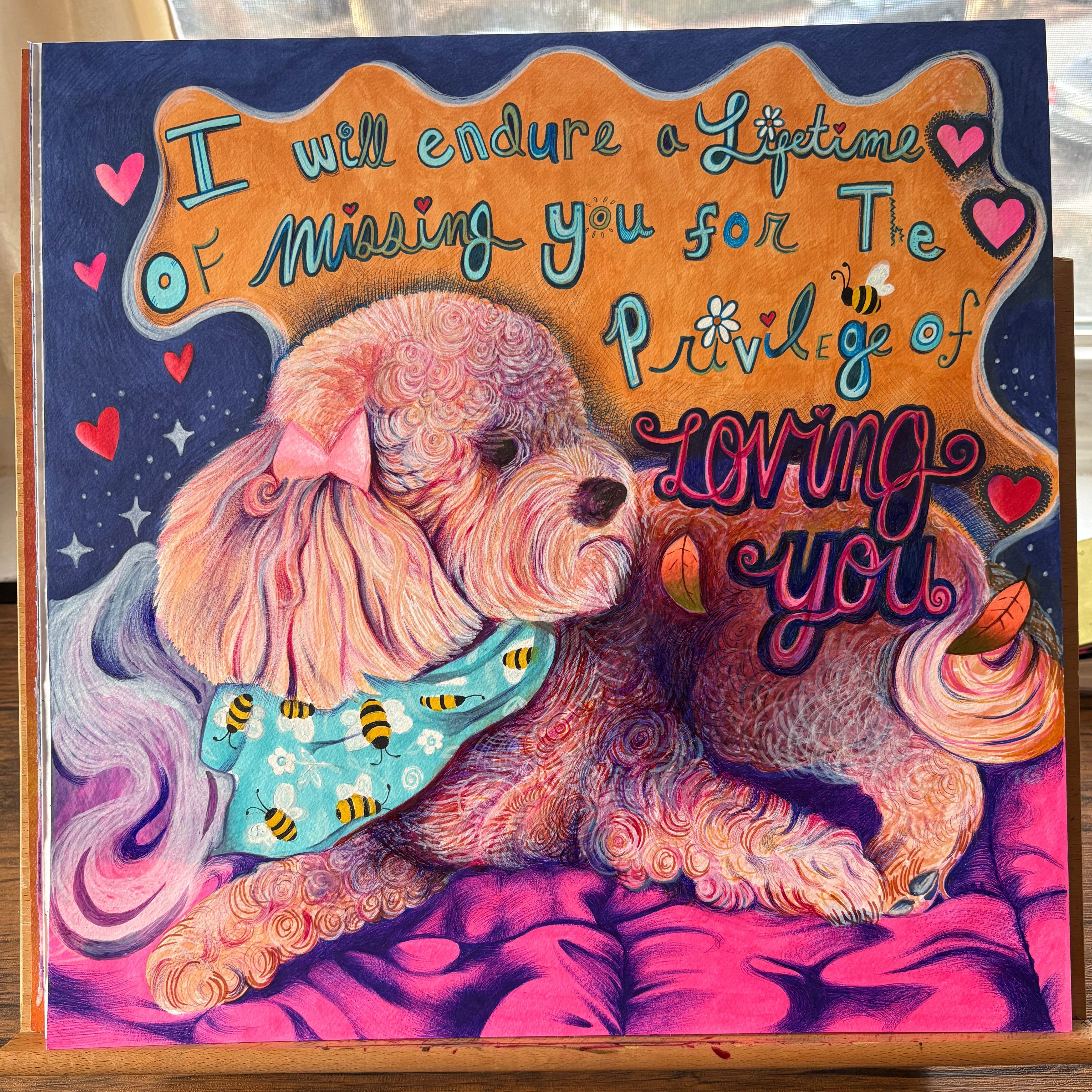 I was so happy to have had the chance to work on my first 16×16” pet portrait in 2025, with sweet sweet Molly Dog. I’m working on someone else whose name rhymes with Juicy (teehee), and I’d love to work on more! Thank you to anyone who has expressed interest in booking with me, it means a lot!! ⸜(。˃ ᵕ ˂ )⸝♡